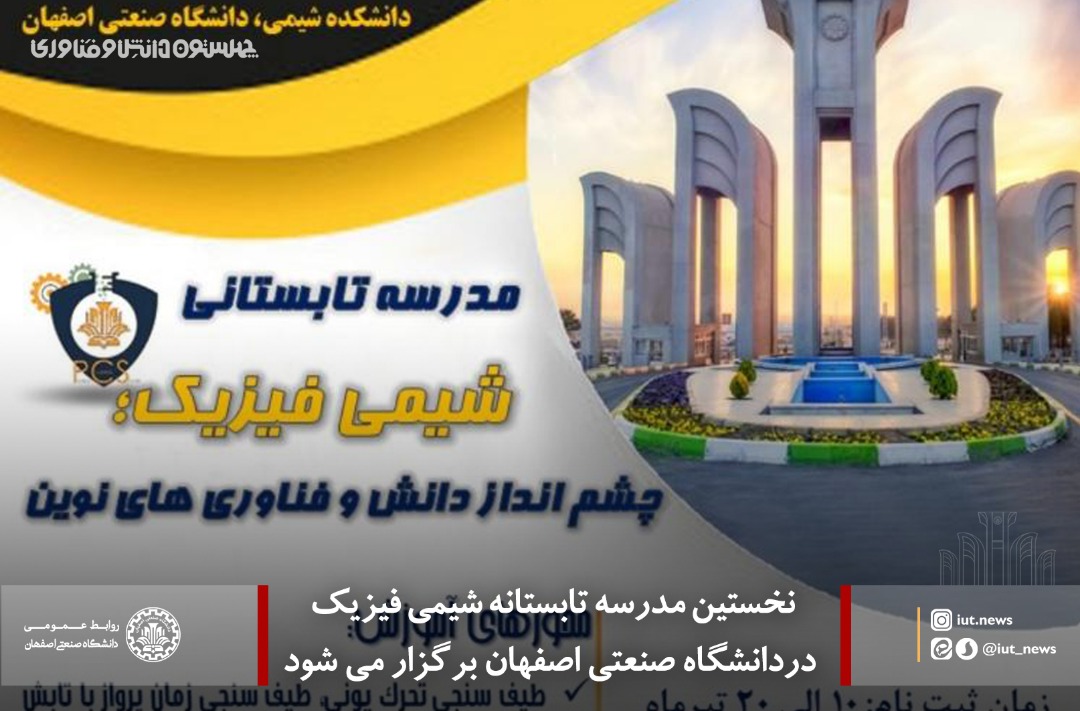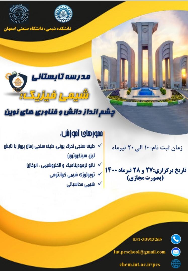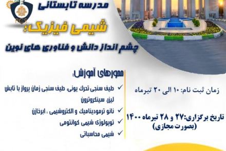 نخستین مدرسه تابستانه شیمی فیزیک،  27 و 28 تیرماه به میزبانی دانشکده شیمی دانشگاه صنعتی اصفهان و به صورت برخط برگزار می شود.
