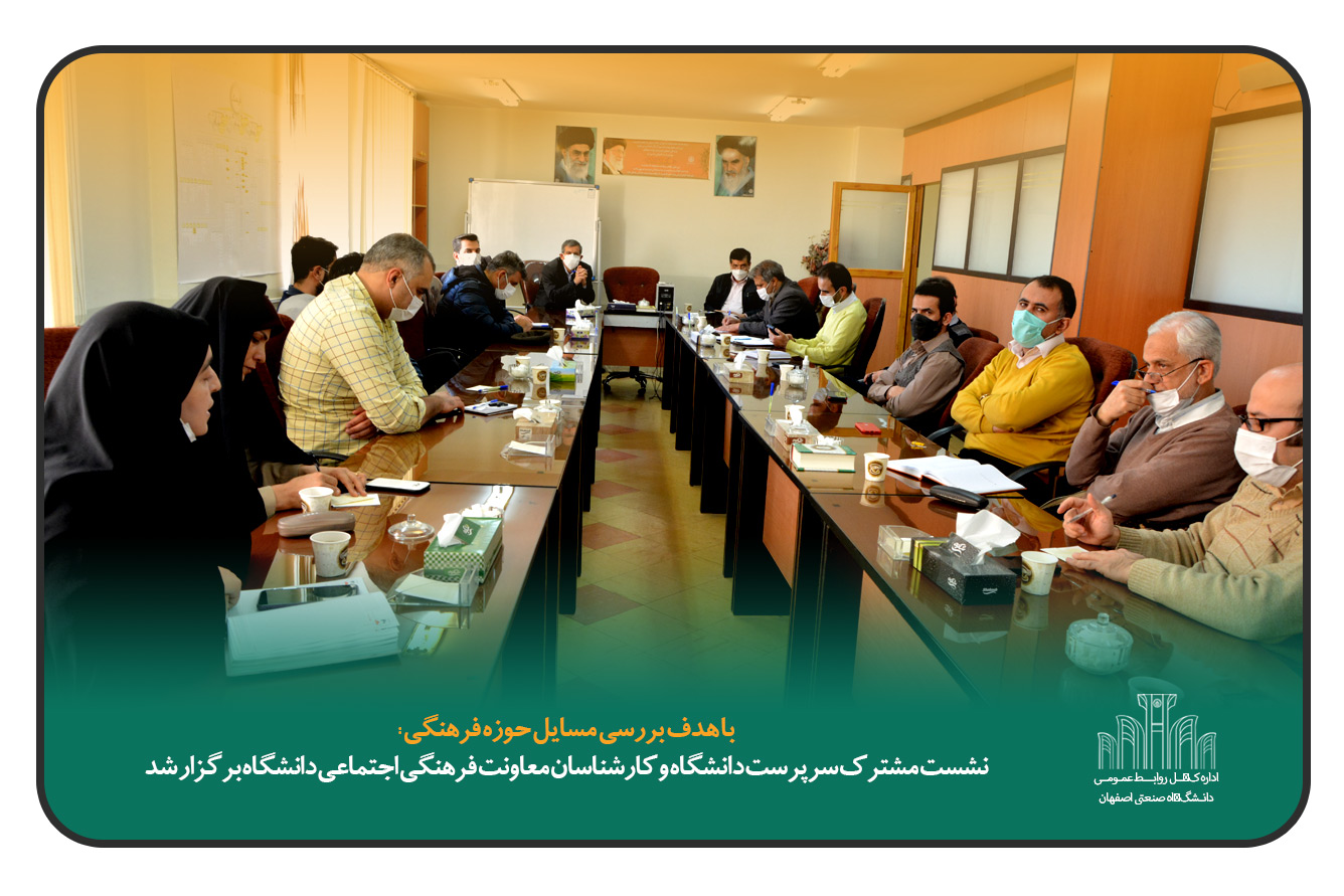 نشست مشترک سرپرست دانشگاه صنعتی اصفهان، معاون و کارشناسان معاونت فرهنگی اجتماعی این دانشگاه با هدف بررسی مسائل و برنامه های پیش روی حوزه فرهنگ برگزار شد.