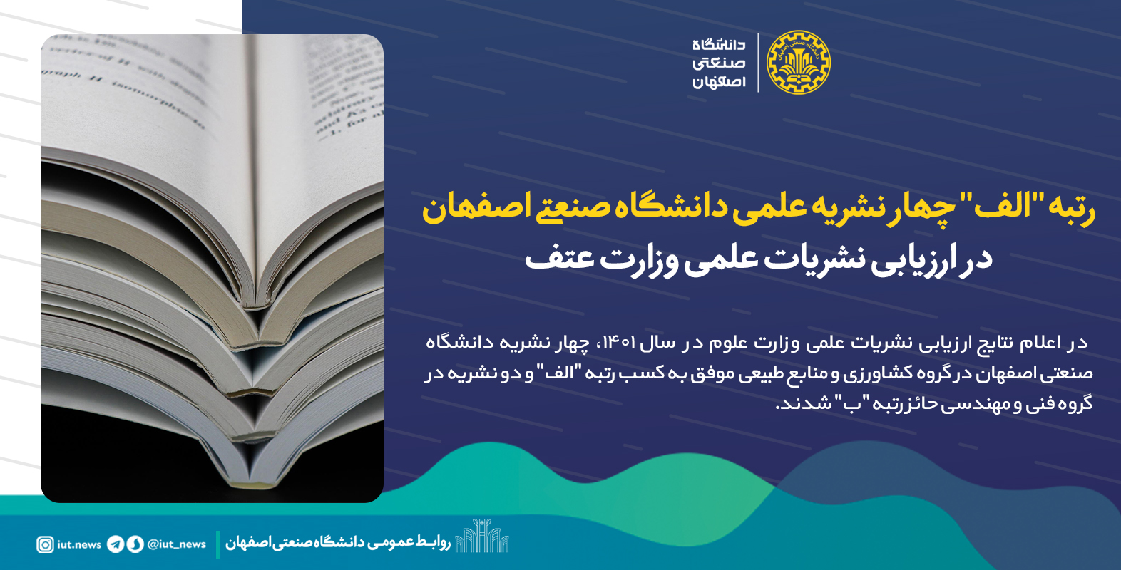 رتبه 'الف' چهار نشریه علمی دانشگاه صنعتی اصفهان در ارزیابی نشریات علمی وزارت عتف