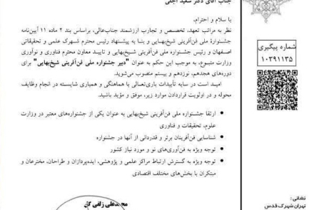عضوهیئت علمی دانشگاه صنعتی اصفهان به عنوان دبیر جشنواره ملی فن آفرینی شیخ بهایی منصوب شد
