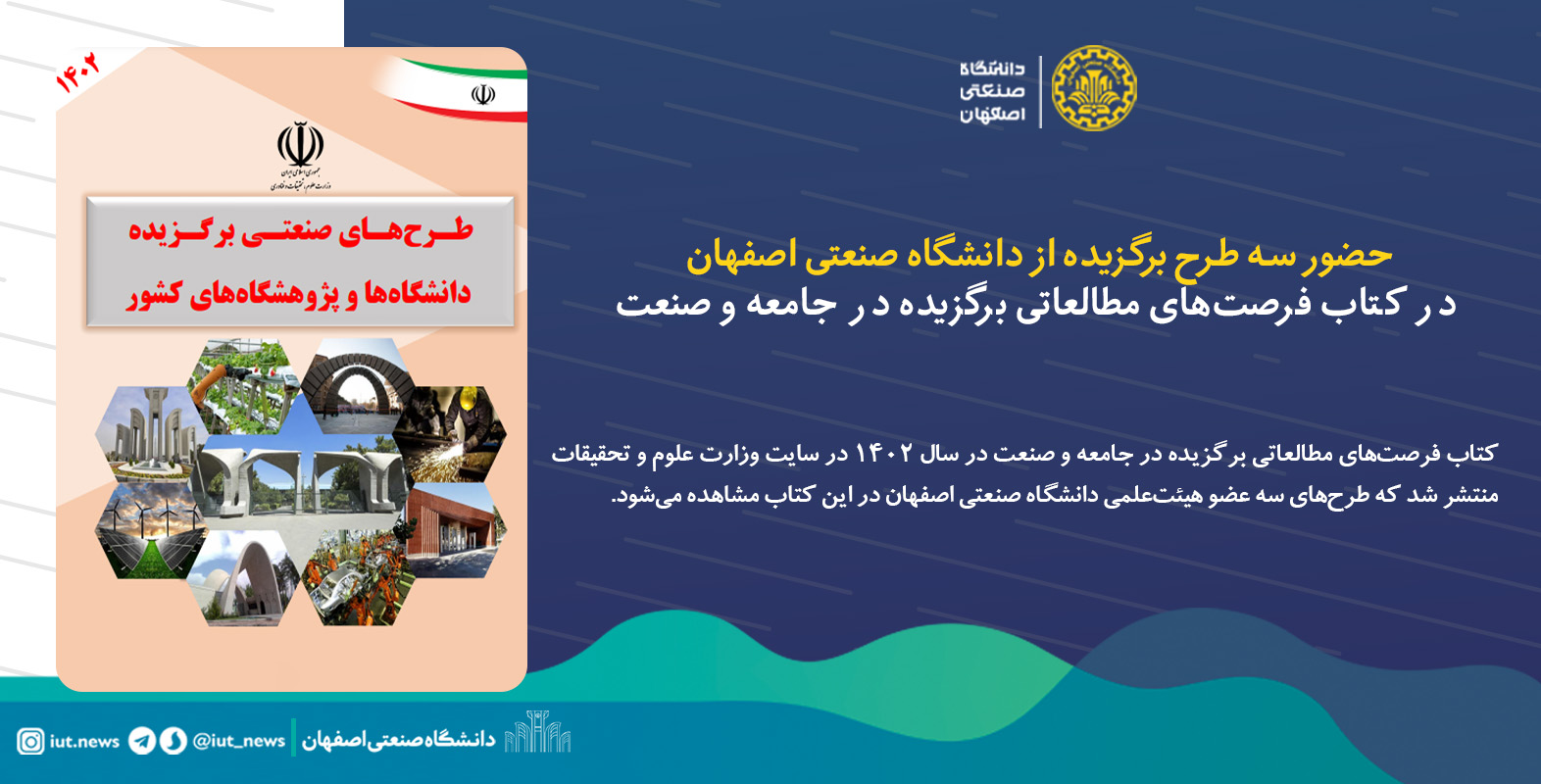 حضور سه طرح برگزیده از دانشگاه صنعتی اصفهان در کتاب فرصتهای مطالعاتی برگزیده در جامعه و صنعت