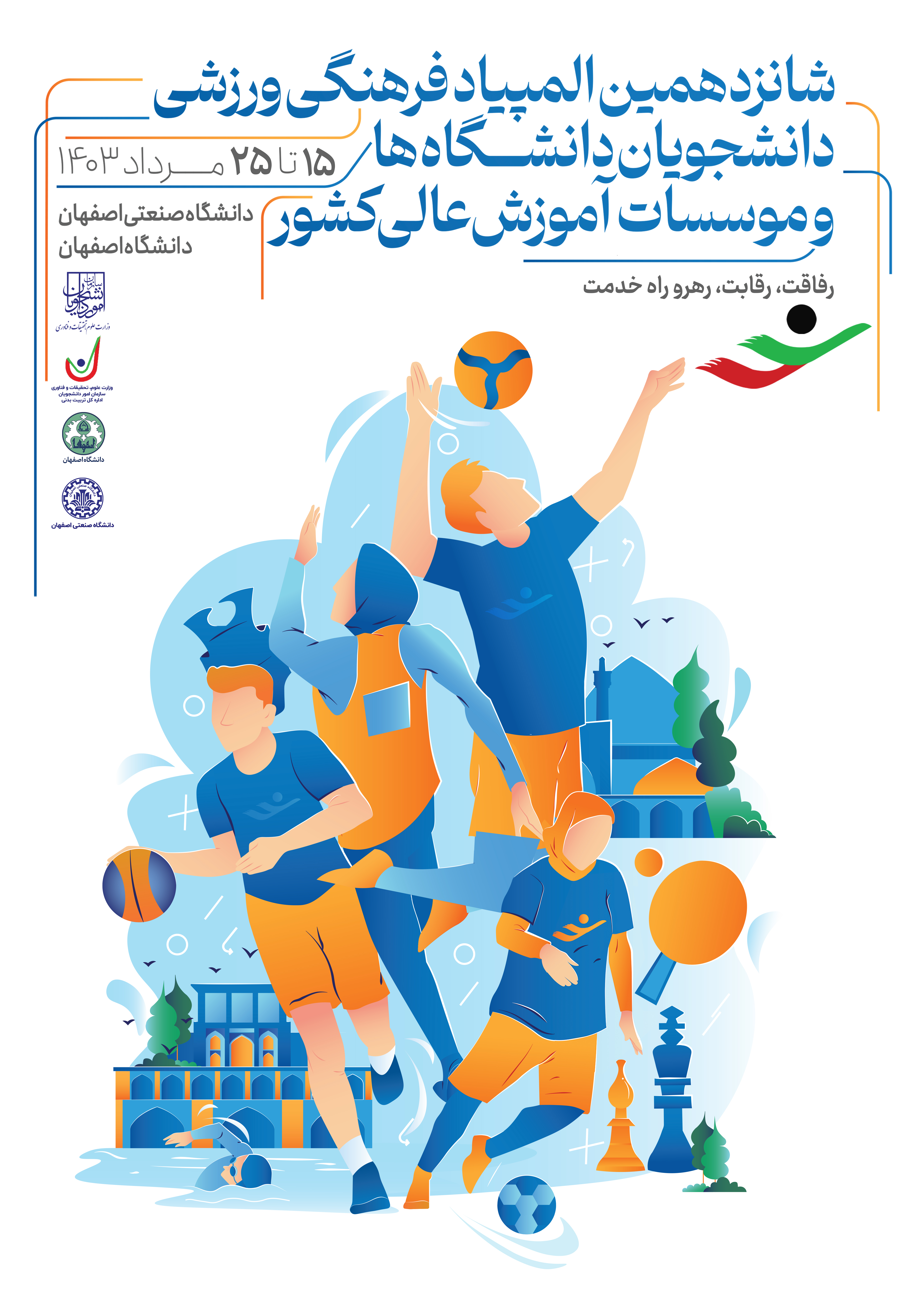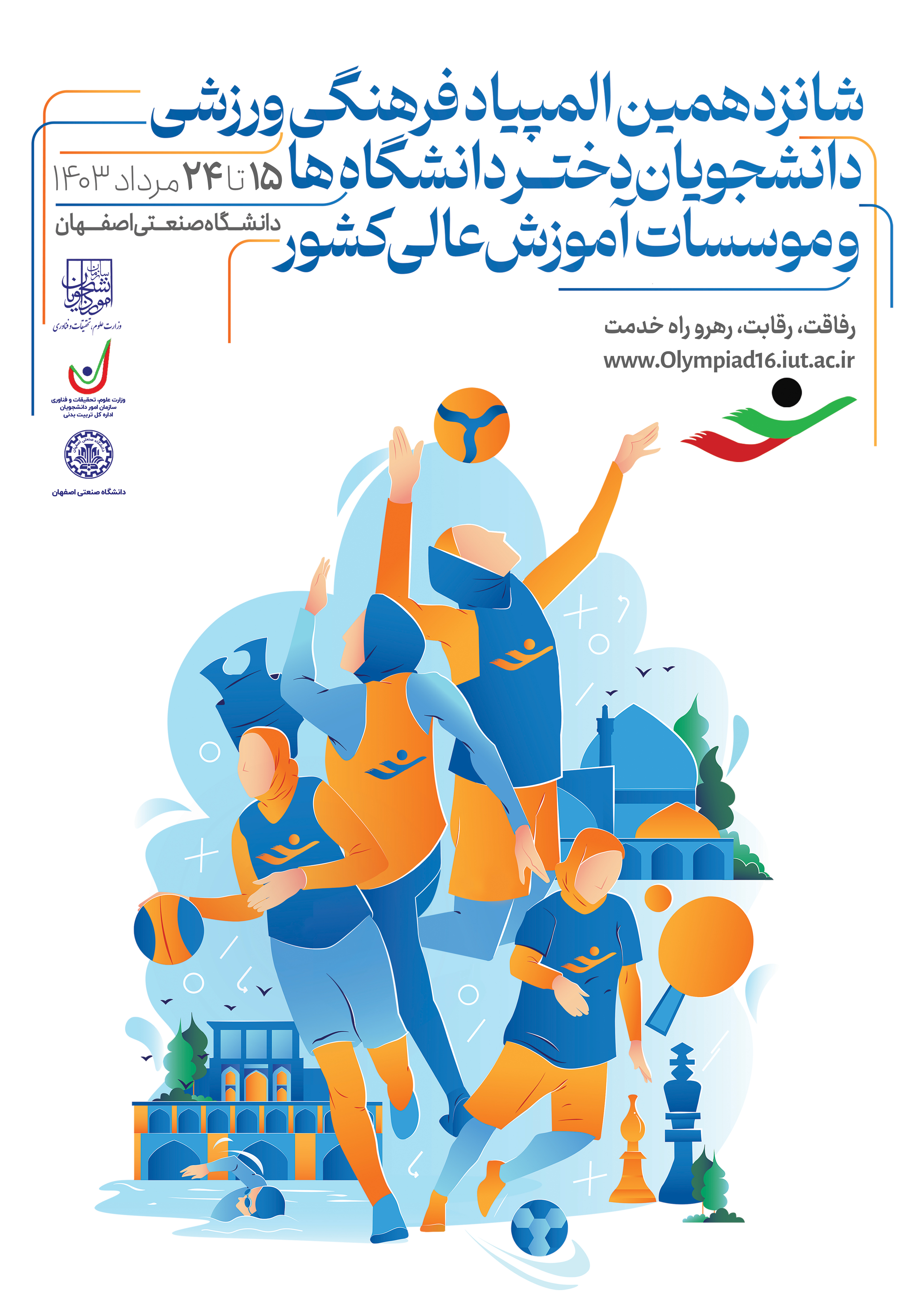 شانزدهمین المپیاد فرهنگی- ورزشی دانشجویان سراسر کشور در بخش دختران در 13 رشته ورزشی از 15 مرداد تا 24 مرداد ماه به میزبانی دانشگاه صنعتی اصفهان و در بخش پسران در 16 رشته ورزشی  از 16 تا 25 مرداد ماه به میزبانی دانشگاه اصفهان برگزار می‌شود.