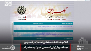 اطلاعیه دانشگاه صنعتی اصفهان در خصوص مرحله دوم ارزیابی تخصصی آزمون نیمه متمرکز دکتری سال تحصیلی01- 1400 (مصاحبه دكتري)