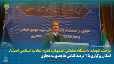 معاون آموزشی وزیر علوم: درخت تنومند دانشگاه صنعتی اصفهان، ثمره انقلاب اسلامی است/ امکان برگزاری 25 درصد کلاس ها بصورت مجازی