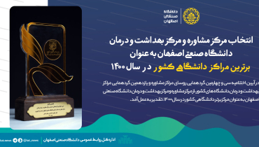 معرفی مرکز مشاوره و بهداشت و درمان دانشگاه صنعتی اصفهان به عنوان برترین مراکز دانشگاهی کشور