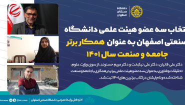 انتخاب سه عضو هیئت علمی برتر دانشگاه صنعتی اصفهان در همکاری با جامعه و صنعت سال 1401